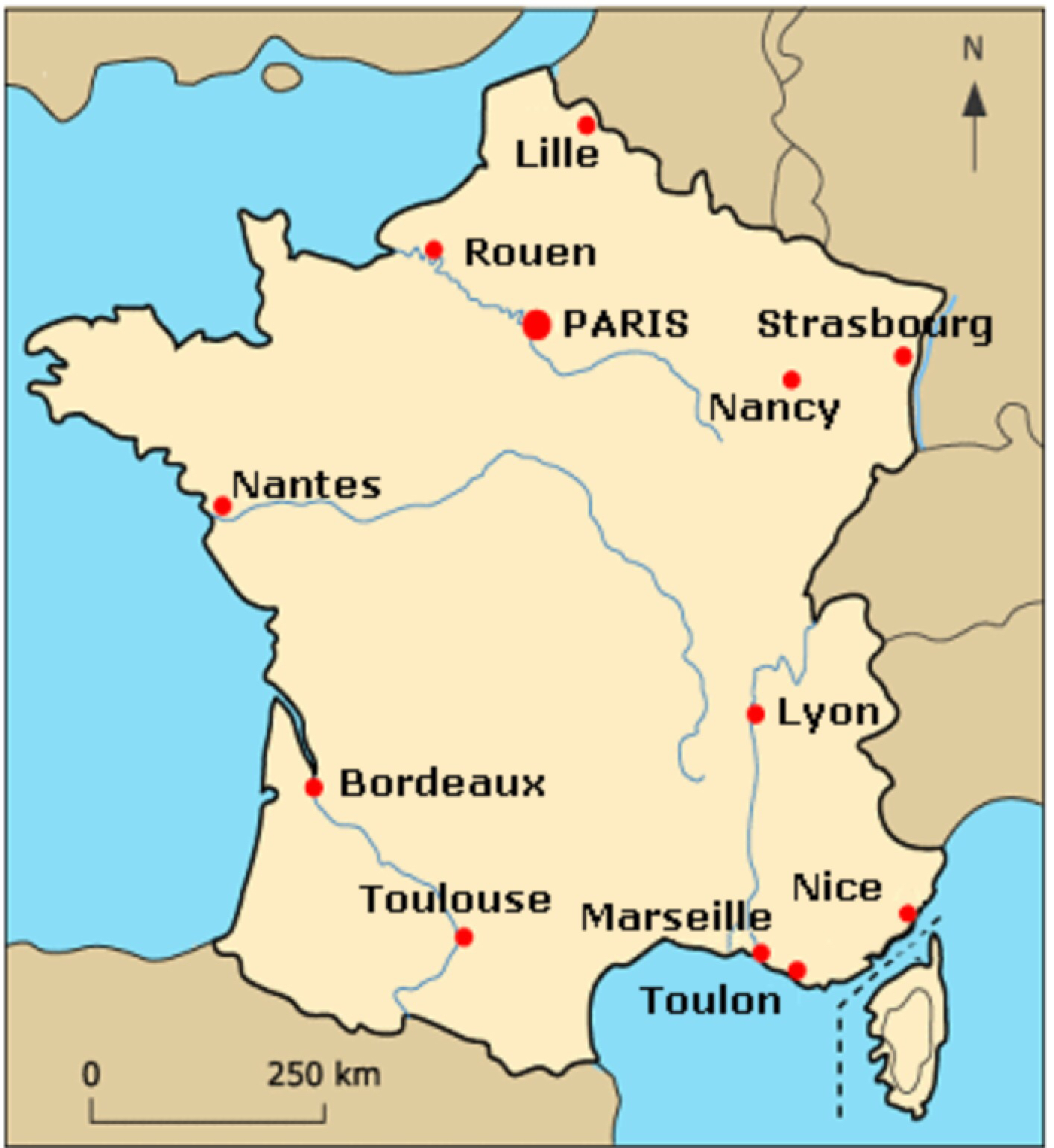 voici la carte des principales villes de france.